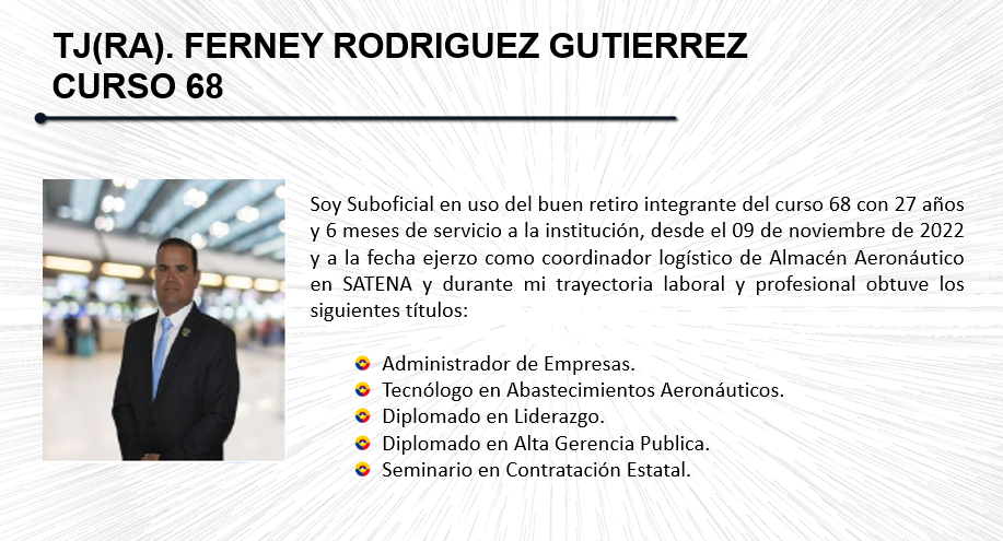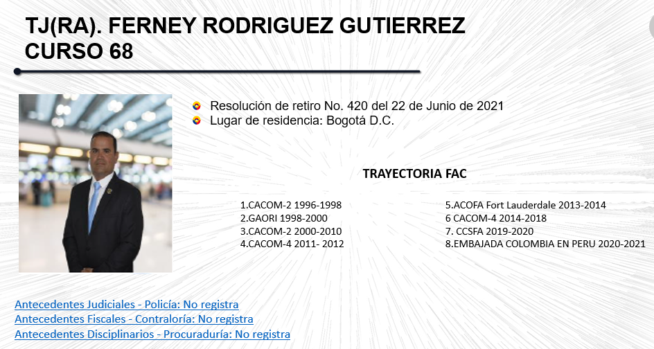 Por lo mismo se establece que como REPRESENTANTE AFILIADOS EFECTIVOS CCSFA SUPLENTE al señor TJ(RA). FERNEY RODRIGUEZ GUTIERREZ quien fue el tercero en la terna de votación.